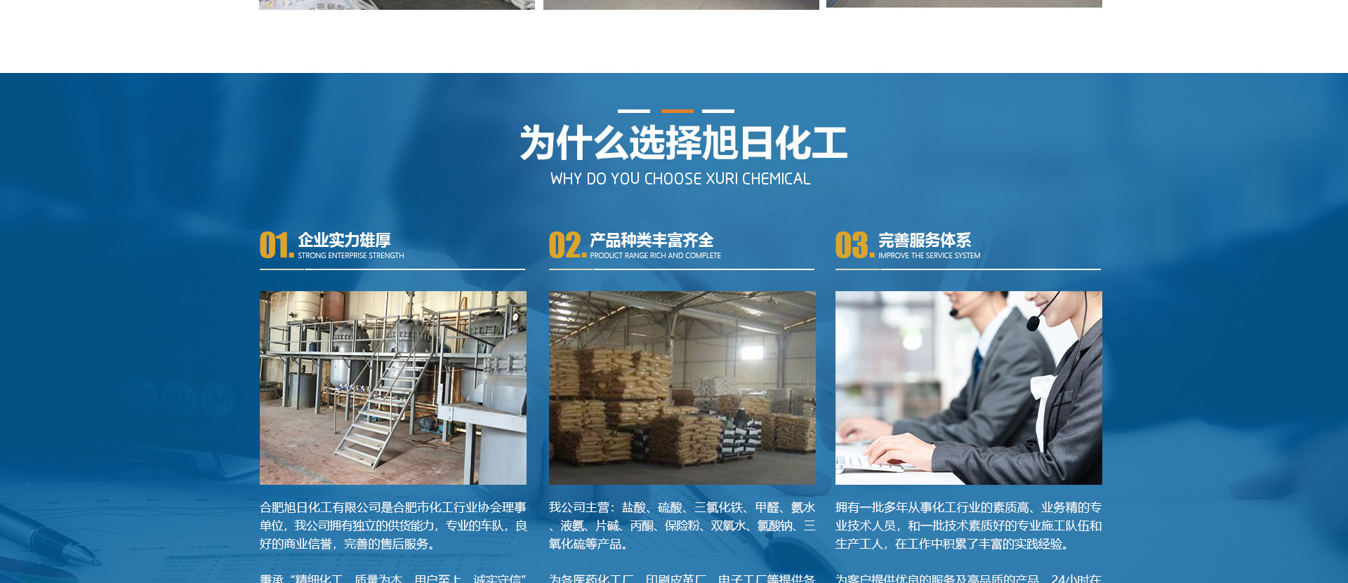 合肥旭日化工有限公司是合肥市化工行業(yè)協(xié)會理事單位,該公司擁有獨立的供貨能力,專業(yè)的車隊,良好的商業(yè)信譽,完善的售后服務。秉承“精細化工、質量為本、用戶至上、誠實守信”的企業(yè)理念。從事各類化工溶劑和原料的國內貿易;為各醫(yī)1藥化工廠、印刷皮革廠、電子工廠等提供各種化工原料配套采購。目前,公司正朝著以貿易為基礎、以實業(yè)為依托,全球采購、全國銷售,內外貿一體化,上下游一體化,具有綜合增值能力和復合競爭能力化工原料供應商。本公司主要經(jīng)營的產品有:鹽酸、硫酸、三氯化鐵、甲醛、氨水、液氨、片堿等。合肥旭日化工有限公司為客戶提供優(yōu)良的服務及高品質的產品,本公司經(jīng)銷的各種產品不僅在安徽地區(qū)深受用戶好評,而且具有很高的市場占有率,產品行銷全國各地區(qū)。